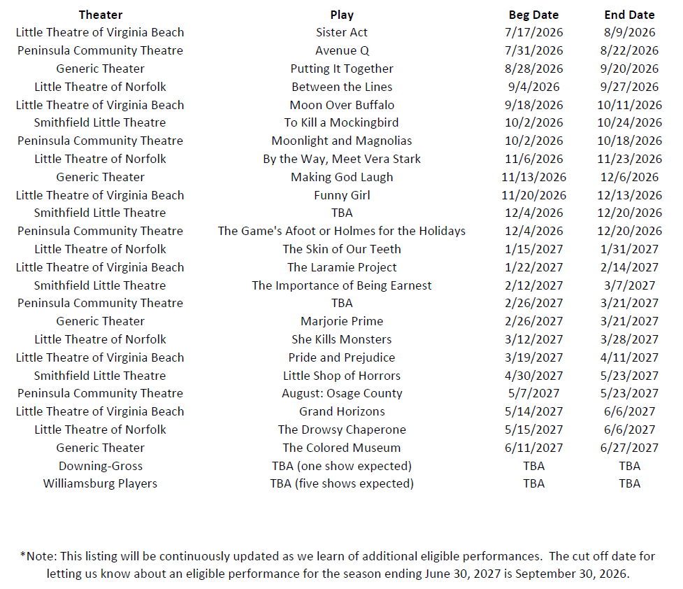 2026-27 Eligible Performances